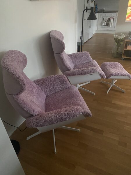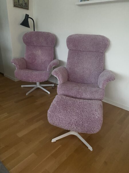 Det här är de rosa fåtöljerna från Mio (Timeout) som vi åkte till Göteborg för att hämta och sälja här i Stockholm.